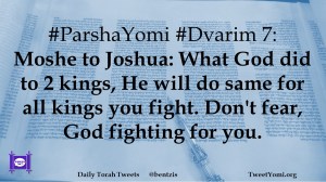 #ParshaYomi #Dvarim 7: Moshe to Joshua: What God did to 2 kings, He will do same for all kings you fight. Don’t fear, God fighting for you.