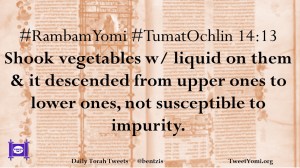 #RambamYomi #TumatOchlin 14:13 Shook vegetables w/ liquid on them & it descended from upper ones to lower ones, not susceptible to impurity.