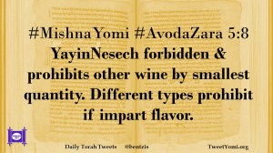 #MishnaYomi #AvodaZara 5:8 YayinNesech forbidden & prohibits other wine by smallest quantity. Different types prohibit if impart flavor.