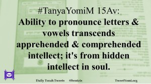 #TanyaYomiM 15Av: Ability to pronounce letters & vowels transcends apprehended & comprehended intellect; it’s from hidden intellect in soul.