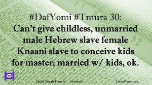 DafYomi, Tmura #DafYomi #Tmura 30 Date: August 19, 2019Author: ysspitz #DafYomi #Tmura 30: Can’t give childless, unmarried male Hebrew slave female Knaani slave to conceive kids for master; married w/ kids, ok. Share this: Share on X (Opens in new window) X Share on Facebook (Opens in new window) Facebook Like Loading... Related