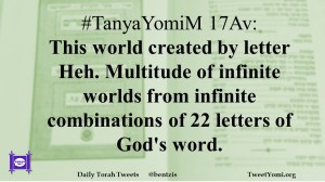 #TanyaYomiM 17Av: This world created by letter Heh. Multitude of infinite worlds from infinite combinations of 22 letters of God’s word.