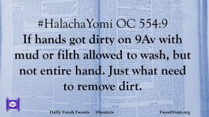 #HalachaYomi OC 554:9 If hands got dirty on 9Av with mud or filth allowed to wash, but not entire hand. Just what need to remove dirt.