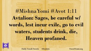 #MishnaYomi #Avot 1:11 Avtalion: Sages, be careful w/ words, lest incur exile, go to evil waters, students drink, die, Heaven profaned.