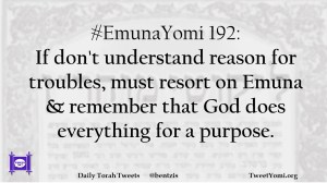 #EmunaYomi 192: If don’t understand reason for troubles, must resort on Emuna & remember that God does everything for a purpose.