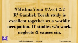 #MishnaYomi #Avot 2:2 R’ Gamliel: Torah study is excellent together w/ a worldly occupation. If studies w/o work, neglects & causes sin.