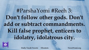 #ParshaYomi #Reeh 3: Don’t follow other gods. Don’t add or subtract commandments. Kill false prophet, enticers to idolatry, idolatrous city.