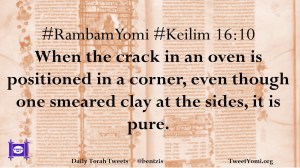 #RambamYomi #Keilim 16:10 When the crack in an oven is positioned in a corner, even though one smeared clay at the sides, it is pure.