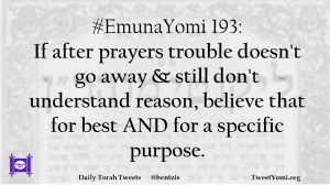 #EmunaYomi 193: If after prayers trouble doesn’t go away & still don’t understand reason, believe that for best AND for a specific purpose.