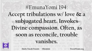 #EmunaYomi 194: Accept tribulations w/ love & a subjugated heart. Invokes Divine compassion. Often, as soon as reconcile, trouble vanishes.