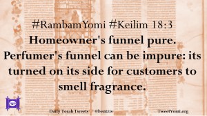 #RambamYomi #Keilim 18:3 Homeowner’s funnel pure. Perfumer’s funnel can be impure: its turned on its side for customers to smell fragrance.