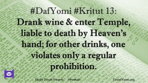 DafYomi, Kritut #DafYomi #Kritut 13 Date: September 4, 2019Author: ysspitz #DafYomi #Kritut 13: Drank wine & enter Temple, liable to death by Heaven’s hand; for other drinks, one violates only a regular prohibition. Share this: Share on X (Opens in new window) X Share on Facebook (Opens in new window) Facebook Like Loading... Related