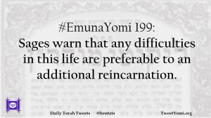 EmunaYomi #EmunaYomi 199 Date: September 5, 2019Author: ysspitz #EmunaYomi 199: Sages warn that any difficulties in this life are preferable to an additional reincarnation. Share this: Share on X (Opens in new window) X Share on Facebook (Opens in new window) Facebook Like Loading... Related