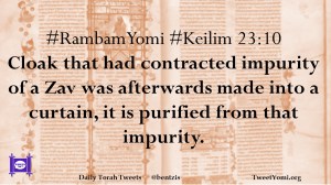 #RambamYomi #Keilim 23:10 Cloak that had contracted impurity of a Zav was afterwards made into a curtain, it is purified from that impurity.
