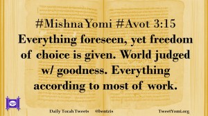 #MishnaYomi #Avot 3:15 Everything foreseen, yet freedom of choice is given. World judged w/ goodness. Everything according to most of work.