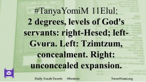 #TanyaYomiM 11Elul: 2 degrees, levels of God’s servants: right-Hesed; left-Gvura. Left: Tzimtzum, concealment. Right: unconcealed expansion.