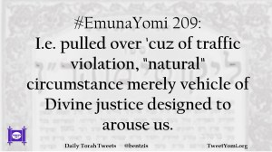 #EmunaYomi 209: I.e. pulled over ‘cuz of traffic violation, “natural” circumstance merely vehicle of Divine justice designed to arouse us.