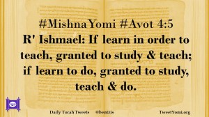 #MishnaYomi #Avot 4:5 R’ Ishmael: If learn in order to teach, granted to study & teach; if learn to do, granted to study, teach & do.