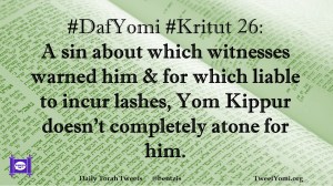 DafYomi, Kritut #DafYomi #Kritut 26: Date: September 17, 2019Author: ysspitz #DafYomi #Kritut 26: A sin about which witnesses warned him & for which liable to incur lashes, Yom Kippur doesn’t completely atone for him. Share this: Share on X (Opens in new window) X Share on Facebook (Opens in new window) Facebook Like Loading... Related