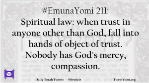 #EmunaYomi 211: Spiritual law: when trust in anyone other than God, fall into hands of object of trust. Nobody has God’s mercy, compassion.