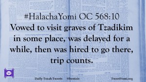 #HalachaYomi OC 568:10 Vowed to visit graves of Tzadikim in some place, was delayed for a while, then was hired to go there, trip counts.