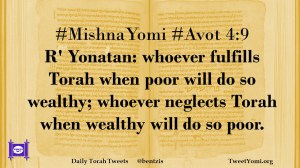 #MishnaYomi #Avot 4:9 R’ Yonatan: whoever fulfills Torah when poor will do so wealthy; whoever neglects Torah when wealthy will do so poor.