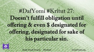 DafYomi, Kritut #DafYomi #Kritut 27 Date: September 18, 2019Author: ysspitz #DafYomi #Kritut 27: Doesn’t fulfill obligation until offering & even $ designated for offering, designated for sake of his particular sin. Share this: Share on X (Opens in new window) X Share on Facebook (Opens in new window) Facebook Like Loading... Related