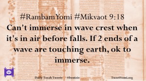 #RambamYomi #Mikvaot 9:18 Can’t immerse in wave crest when it’s in air before falls. If 2 ends of a wave are touching earth, ok to immerse.
