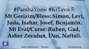 #ParshaYomi #KiTavo 5: Mt Gerizim/Bless: Simon, Levi, Juda, Isahar, Josef, Benjamin. Mt Eval/Curse: Ruben, Gad, Asher Zevulun, Dan, Naftali.
