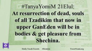 #TanyaYomiM 21Elul: At resurrection of dead, souls of all Tzadikim that now in upper GanEden will be in bodies & get pleasure from Shechina.