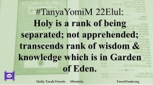 #TanyaYomiM 22Elul: Holy is a rank of being separated; not apprehended; transcends rank of wisdom & knowledge which is in Garden of Eden.