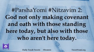 #ParshaYomi #Nitzavim 2: God not only making covenant and oath with those standing here today, but also with those who aren’t here today.
