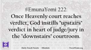 #EmunaYomi 222: Once Heavenly court reaches verdict, God instills “upstairs” verdict in heart of judge/jury in the “downstairs” courtroom.