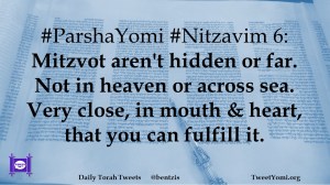 #ParshaYomi #Nitzavim 6: Mitzvot aren’t hidden or far. Not in heaven or across sea. Very close, in mouth & heart, that you can fulfill it.