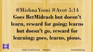 #MishnaYomi #Avot 5:14 Goes BetMidrash but doesn’t learn, reward for going; learns but doesn’t go, reward for learning; goes, learns, pious.