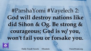 #ParshaYomi #Vayelech 2: God will destroy nations like did Sihon & Og. Be strong & courageous; God is w/ you, won’t fail you or forsake you.