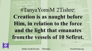 #TanyaYomiM 2Tishre: Creation is as naught before Him, in relation to the force and the light that emanates from the vessels of 10 Sefirot.