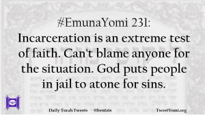 #EmunaYomi 231: Incarceration is an extreme test of faith. Can’t blame anyone for the situation. God puts people in jail to atone for sins.