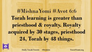 #MishnaYomi #Avot 6:6 Torah learning is greater than priesthood & royalty. Royalty acquired by 30 stages, priesthood 24, Torah by 48 things.