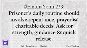 #EmunaYomi 233: Prisoner’s daily routine should involve repentance, prayer & charitable deeds. Ask for strength, guidance & quick release.