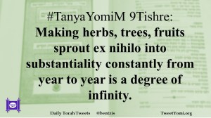 #TanyaYomiM 9Tishre: Making herbs, trees, fruits sprout ex nihilo into substantiality constantly from year to year is a degree of infinity.
