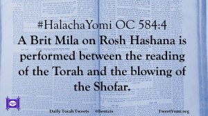 #HalachaYomi OC 584:4 A Brit Mila on Rosh Hashana is performed between the reading of the Torah and the blowing of the Shofar.