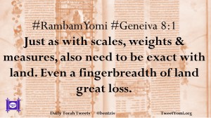 #RambamYomi #Geneiva 8:1 Just as with scales, weights & measures, also need to be exact with land. Even a fingerbreadth of land great loss.