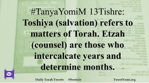 #TanyaYomiM 13Tishre: Toshiya (salvation) refers to matters of Torah. Etzah (counsel) are those who intercalcate years and determine months.
