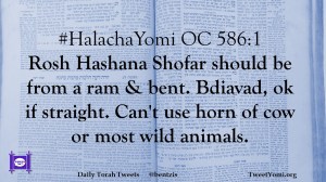 #HalachaYomi OC 586:1 Rosh Hashana Shofar should be from a ram & bent. Bdiavad, ok if straight. Can’t use horn of cow or most wild animals.