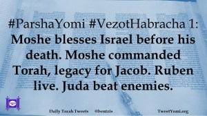 #ParshaYomi #VezotHabracha 1: Moshe blesses Israel before his death. Moshe commanded Torah, legacy for Jacob. Ruben live. Juda beat enemies.