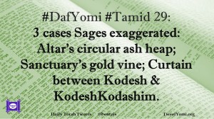 DafYomi, Tamid #DafYomi #Tamid 29 Date: October 16, 2019Author: ysspitz #DafYomi #Tamid 29: 3 cases Sages exaggerated: Altar’s circular ash heap; Sanctuary’s gold vine; Curtain between Kodesh & KodeshKodashim. Share this: Share on X (Opens in new window) X Share on Facebook (Opens in new window) Facebook Like Loading... Related
