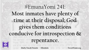 #EmunaYomi 241: Most inmates have plenty of time at their disposal; God gives them conditions conducive for introspection & repentance.