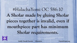 #HalachaYomi OC 586:10 A Shofar made by gluing Shofar pieces together is invalid, even if mouthpiece part has minimum Shofar requirements.