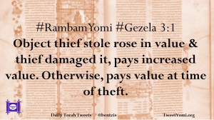 #RambamYomi #Gezela 3:1 Object thief stole rose in value & thief damaged it, pays increased value. Otherwise, pays value at time of theft.
